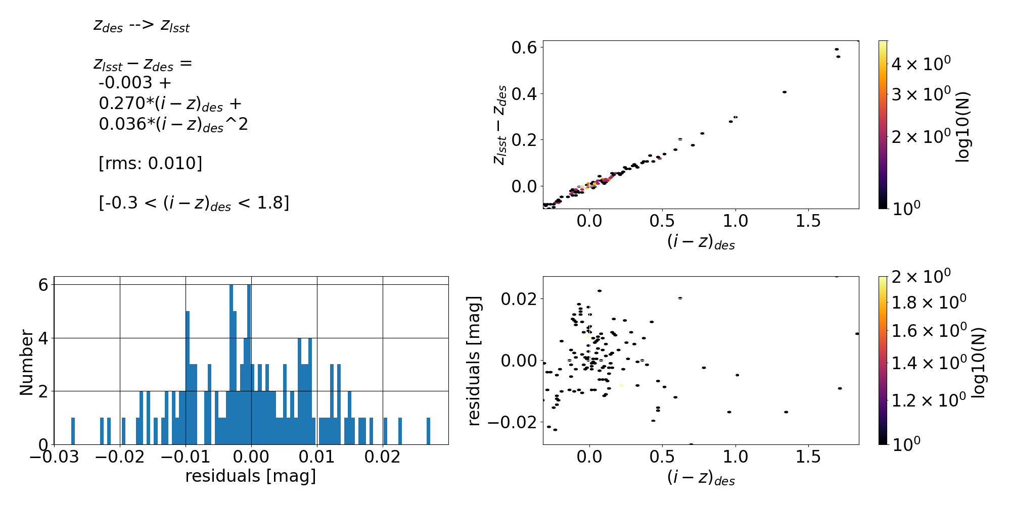 \(z_{DES} = z_{ComCam} + 0.262 (i-z)_{ComCam} - 0.046 (i-z)^2_{ComCam} + 0.001\) |